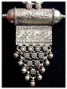 Amulette und Talismane werden seit Tausenden von Jahren als Schmuck und zum Schutz eingesetzt. Anthropologen glauben, dass Amulette die Grundform jeden Schmucks sind. Das Bedürnis nach Schutz und Macht ist älter als der Wunsch nach Verschönerung. Deshalb tragen traditionell auch Frauen - die als Trägerinnen der zukünftigen Generationen ein höheres Schutzbedürfnis haben, mehr Schmuck als Männer:Schmuck als physischer und psychischer Schutz Mit der magischen Kraft der Amulette wollen die Menschen unsichtbare Bedrohungen abwehren und sich schützen vor Krankheit, Tod,Unfruchtbarkeit, Magie, Unglück jeder Art und schlechten Einflüssen. Es gibt eine Vielzahl von Formen der Amulette, die alle ihre besondere Bedeutung haben. Besonders die Amulettbehälter dienen dem Schutz und können Schutzformeln oder Mantras, ein Bild oder Asche, Heilkräuter oder die Kralle eines Tieres enthalten - oder auch Eisen, das in manchen Kulturen als wirksames Mittel zum Bekämpfen böser Geister gilt. |