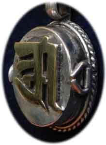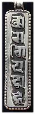 Die Schutzformeln der Amulettbehälter sind oft nicht nur in ihrem Inneren angebracht, sondern in der jeweiligen Symbolik außen eingraviert. Übliche Symbole sind der endlose Knoten, das OM Zeichen, das Kalachakra Symbol oder auch Abbildungen wie z.B. Buddha Figuren. |