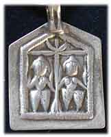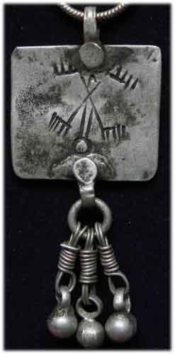 antikes Silberamulett mit Piktogramm (Schutz vor Unglück und Gefahren) Gewicht 13,5 g 4,5 x 4,5 cm € 112,- Bestell-Nr. 504213