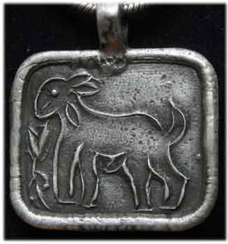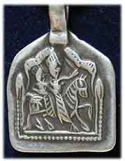 antikes Silberamulett mit Piktogramm (Schutz vor Unglück und Gefahren) Gewicht 17,5 g 4,5 x 5 cm € 126,- Bestell-Nr. 504212