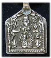 antikes Silberamulett mit Frauenfigur Symbol für fruchtbare Ernten und Fruchtbarkeit Gewicht 10 g 3,2 x 3,5 cm € 82,- Bestell-Nr. 501202