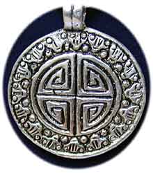 Das Arianrhod Amulett entstammt der keltischen Tradition und stellt die walisische Mondgöttin als Mondsichel sowie die Venus als Stern da. Ein Amulett für weibliche Schönheit, Weisheit und Kraft. Die drei Spiralen des Triskell repräsentieren den ewigen Kreislauf der Dreiheit Wasser, Luft und Erde. Die Spirale symbolisiert die Evolution des Unisversums und steht für Wachstum und Vorwärtskommen. |