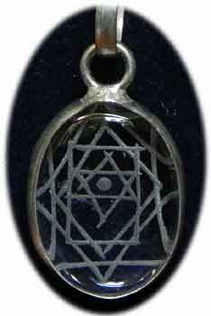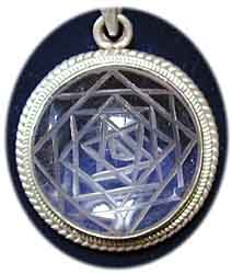 Mount Meru Amulett Bergkristall Symbol für den ehiligen Berg Tibets ein Glückssymbol Gewicht 7 g Ø: 2,5 cm In Sterling Silber gefaßt € 22,- Bestell-Nr. 503846x