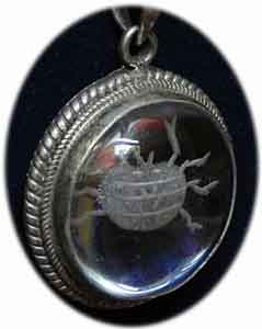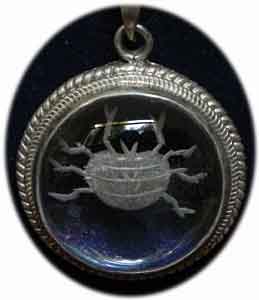 Bergkristall mit Sternzeichen Krebs Gewicht 9 g Ø: 2,5 cm In Sterling Silber gefaßt € 22,- Bestell-Nr. 503847
