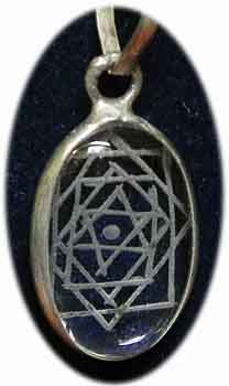 Kristall Amulette mit verschiedenen eingravierten Symbolen |