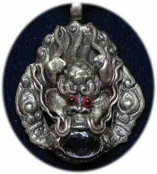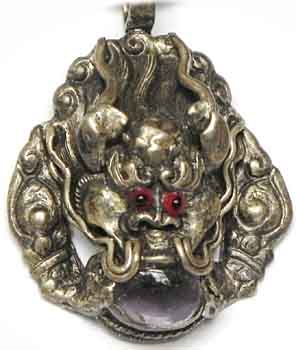 Kirtimukha Schutz Amulett aus Sterling Silber mit eingelegtem Amethyst Gewicht 6 g 3,5 x 2,5 cm € 32,- Bestell-Nr. 503684