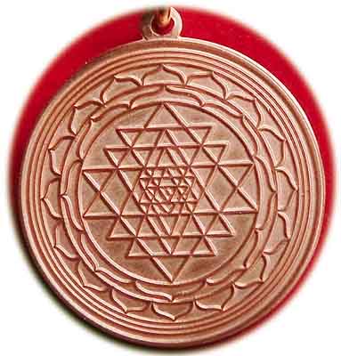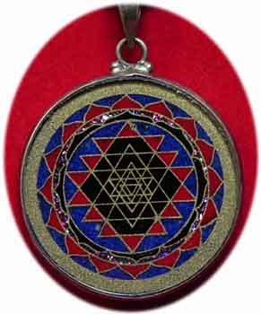 Schutzamulett Shri Yantra Koralle auf Lapislazuli gefaßt in Sterling Silber beidseitig mit Schutzplatte aus Glas ein mächtiges Schutzsymbol. das zur Meditation verwendet wird Gewicht 12 g Ø: 3 cm € 34,- Bestell-Nr. 504232x