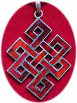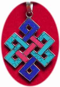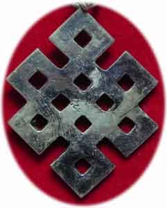Schutzamulette mit den tibetischen Glückszeichen, dem Mantra Om Mani Padme Hum und dem Schutzsymbol Unendlichker KnotenSpirituelle Schutzsymbole |