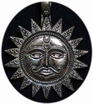 Sonnenamulettkette Shivas Eye mit Perlen Sonnen Anhänger: Sterling Silber mit Shivays Eye Ø Sonnen Anhänger 4,5 cm Kettenglieder Perlen, Sterling Silber 53 g Kettenlänge: bis 60 cm mit Verschluß € 168,- Bestell-Nr. 113366