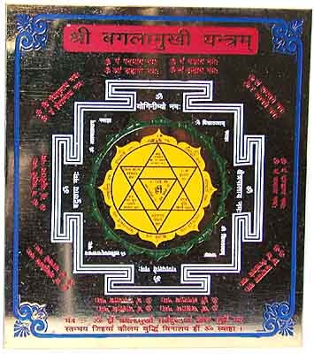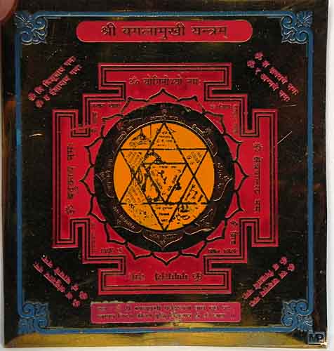 Shree Bagla Mukhi Yantra Das Bagla Mukhi Yantra ist ein sehr wirksames Yantra und erleichtert den erfolgreichen Abschluß z.B. bei Prüfungen, aber auch Gerichtsstreitigkeiten. Es soll auch Schutz vor Verletzungen und Unfällen sowie sichtbaren und unsichtbaren Gegnern gewähren. Mantra: Om Paramaatmane Namah Kupfer, mit 24 Karat Goldüberzug Größe: 10,7 x 12 cm € 36,- Bestell-Nr. 503