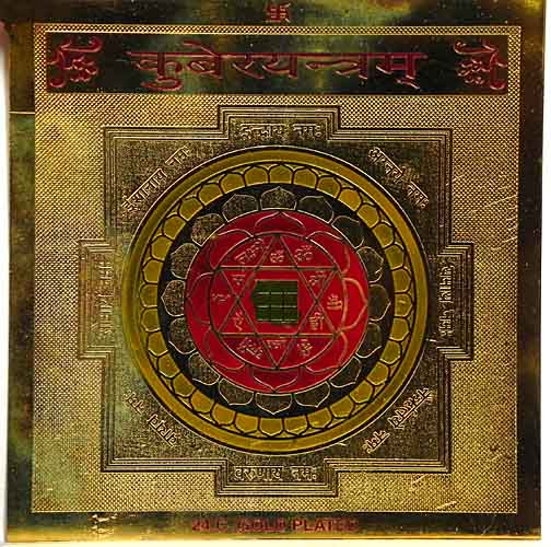 Shri Kuber Yantra Dieses Yantra ist dem Gott des Reichtums, Kuber,zugeordnet. Es soll zu finanziellem Wohlstand verhelfen, wenn andere Methoden und Yantras keinen Erfolg gebracht haben. Kupfer, mit 24 Karat Goldüberzug Größe: 10,7 x 12 cm € 36,- Bestell-Nr. 503741x