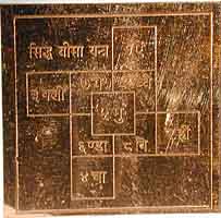 Mahalaxmi Yantra Ein Yantra, das den Segen der Göttin des Reichtums herbeiruft. mit dem Segen von Vishnu und Laxmi für ein glückliches und erfolgreiches Leben). Kupfer, Größe: 11,5 x 11,5 cm € 22,- Bestell-Nr. 503748