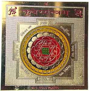 Yantras dienen als symbolische Offenbarungen kosmischer Wahrheiten und Embleme psychischer Kräfte. Sie werden verwendet, um bestimmte Ziele und Ergebnisse zu erreichen. Sie sind ein Talisman oder mystisches Diagramm, das den Weg zur einfachen und schnellen Realisierung bestimmter Wünsche symbolisiert. Yantras sind visuelle Formen von Mantra-Energie, deshalb haben viele Yantras auch ihr spezielles Mantra. Die Yantras bestehen aus einer Kupferplatte, die mit 24 Karat Gold überzogen wurde. Traditionell werden sie in eine Ecke des Hauses gestellt, idealerweise dort, wo sich bereits ein kleiner Altar befindet. |